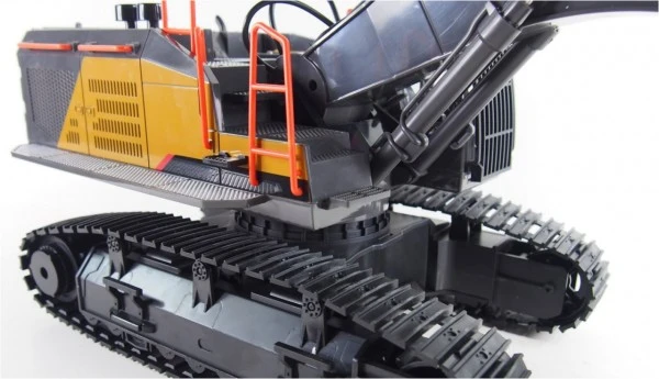 Aufwendiger und hochwertiger Nachbau eines schweren Kettenbaggers. Hohe Detailtreue und hohe MaterialgĂŒte. Mit einer echten Eurosteuerung (KnĂŒppel belegt wie im echten Bagger) mit störungsfreiem 2,4GHz System. Robuste Schaufel aus Metall. KrĂ€ftige Stellmotoren ermöglichen es selbst schwere GegenstĂ€nde zu heben. ZusĂ€tzlich sind alle Getriebeteile in den Armen mit einer „Ăberlast Schutzfunktion“ ausgestattet. Die Ketten sind einzeln ansteuerbar und das Modell ist dank Spritzwasserschutz voll outdoor tauglich!