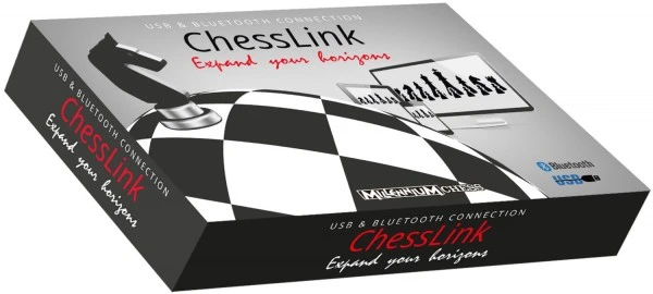 Der ChessLinkermöglicht es, eine Vielzahl von mobilen oder stationären Geräten mit Millennium Schachcomputern zu verbinden und dann die auf den Geräten installierten Programme auf den Spielfeldern der Schachcomputer zu nutzen. Durch die LEDs des Exclusive-Bretts ist dabei kaum ein Blick aufs Display des verbundenen End-Gerätes nötig, es kann ganz natürlich auf dem Holzbrett gespielt werden.