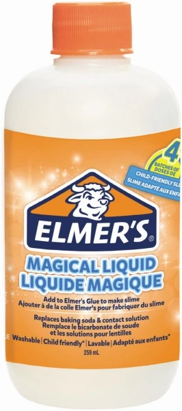 Mischen Sie einfach Magical Liquid, die magische Flüssigkeit von Elmer’s, mit weißem und klarem Kleber, um bis zu vier Einheiten klebrigen PVA-Slimes zu erhalten, mit dem sich hervorragend spielen lässt! Die Herstellung von klebrigem Slime bereitet viel Freude und ist eine Garantie für familienfreundlichen Spaß.