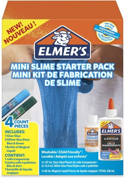 Das Starterset enthält alles, was Sie zum Herstellen von selbst gemachtem Slime benötigen: zwei Flaschen klaren PVA-Kleber, vier Glitzer-Klebestifte und zwei Flaschen magische Flüssigkeit von Elmer’s. Mit dem klaren Kleber erhalten Sie einer klare Slime-Grundmasse, während Sie dem Slime mit den Glitzer-Stiften perfekt zahlreiche leuchtende Farben verleihen können.