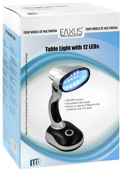 Die 12 LED Tischleuchte von Eaxus passt in jede Wohnumgebung, strahlt ein angenehmes Licht aus und ergänzt Ihren Schreib- oder Wohnzimmertisch perfekt. Durch den verstellbaren Lichtwinkel lässt Sie sich immer genau passend einstellen und ist somit sehr flexibel nutzbar. Zudem kann die Lampe mit Leichtigkeit von einem Raum in den anderen transportiert werden und ist sofort einsatzbereit, da sie an kein Kabel gebunden ist!
